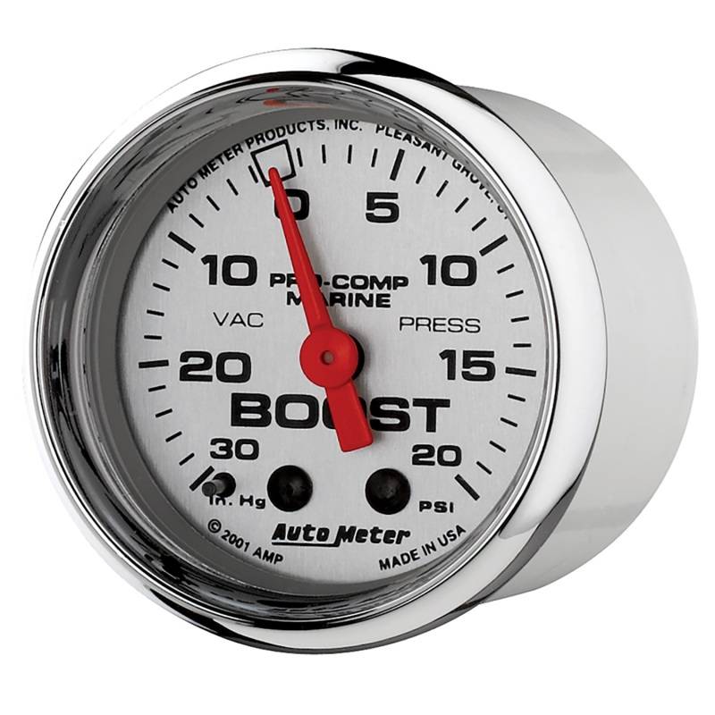 GAUGE, VAC/BOOST, 2 1/16", 30INHG-20PSI, MECHANICAL, MARINE CHROME