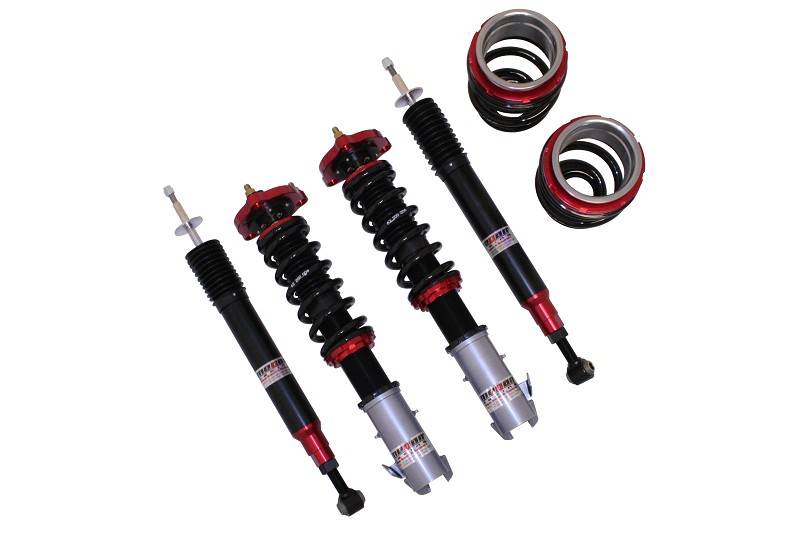 Height adjustments are made with separate CNC-Machined locking spring perches for accuracy and smooth adjustment with separate damper shock length adjustment to retain full-stroke and allows for precision suspension tuning. The wide range of allowable ride-height adjustment allows you to retain the factory ride-height for OEM appearance with performance handling, drop your car all the way down for an aggressive stance, or fine tune your suspension for the race-track to lowering your center of gravity to gain full potential of your vehicle's handling capabilities.