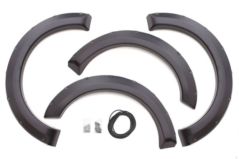 APPLICATION SUMMARY: Rugged and Bold FlareLUND?s RX-Rivet Style? fender flares are the perfect addition to lifted trucks, creating a bold, unmistakable appearance. Designed for larger tires and wheels, LUND?s RX-Rivet Style flares will transform your Chevy Silverado, Toyota Tundra, GMC Sierra, Dodge Ram or Ford truck into an off-road, gutsy-appearing ride. Update your vehicle with an awesome, wide-body look while shielding it from road debris. The extra height of the flares is also a great quick fix for covering rust and minor damages on the fender.