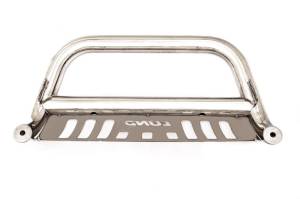 APPLICATION SUMMARY: LUND Bull Bar with built-in LED Light Bar and wiring harness creates a tough, heavy-duty look on your truck?s front end while providing bumper and grille protection and improved night visibility.