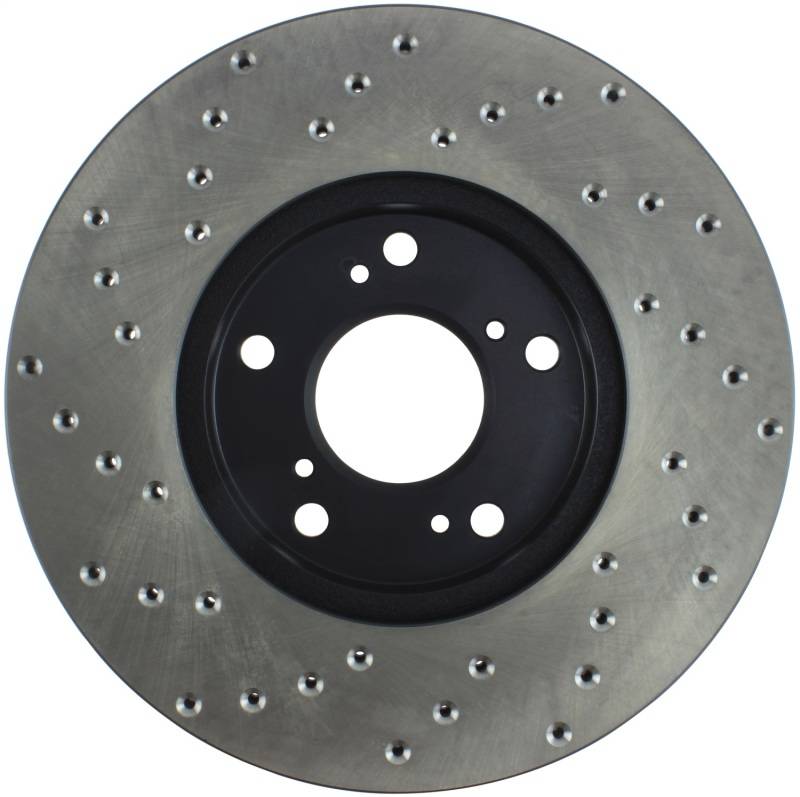 Premium e-coated rotor with advanced metallurgy that greatly reduces pad squeal. Especially effective with higher friction, European style brake pad compounds. Drilled for increased bite, improved looks and better performance