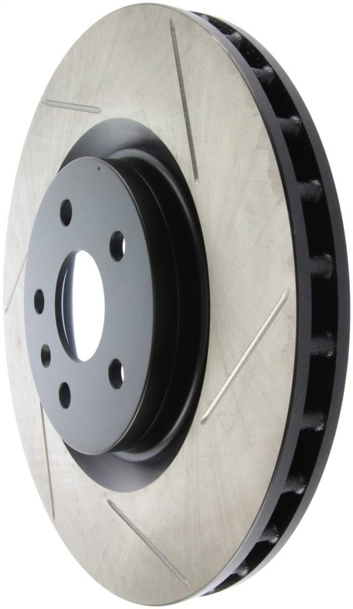 Premium e-coated rotor with advanced metallurgy that greatly reduces pad squeal. Especially effective with higher friction, European style brake pad compounds. Slotted for increased bite, improved looks and better performance