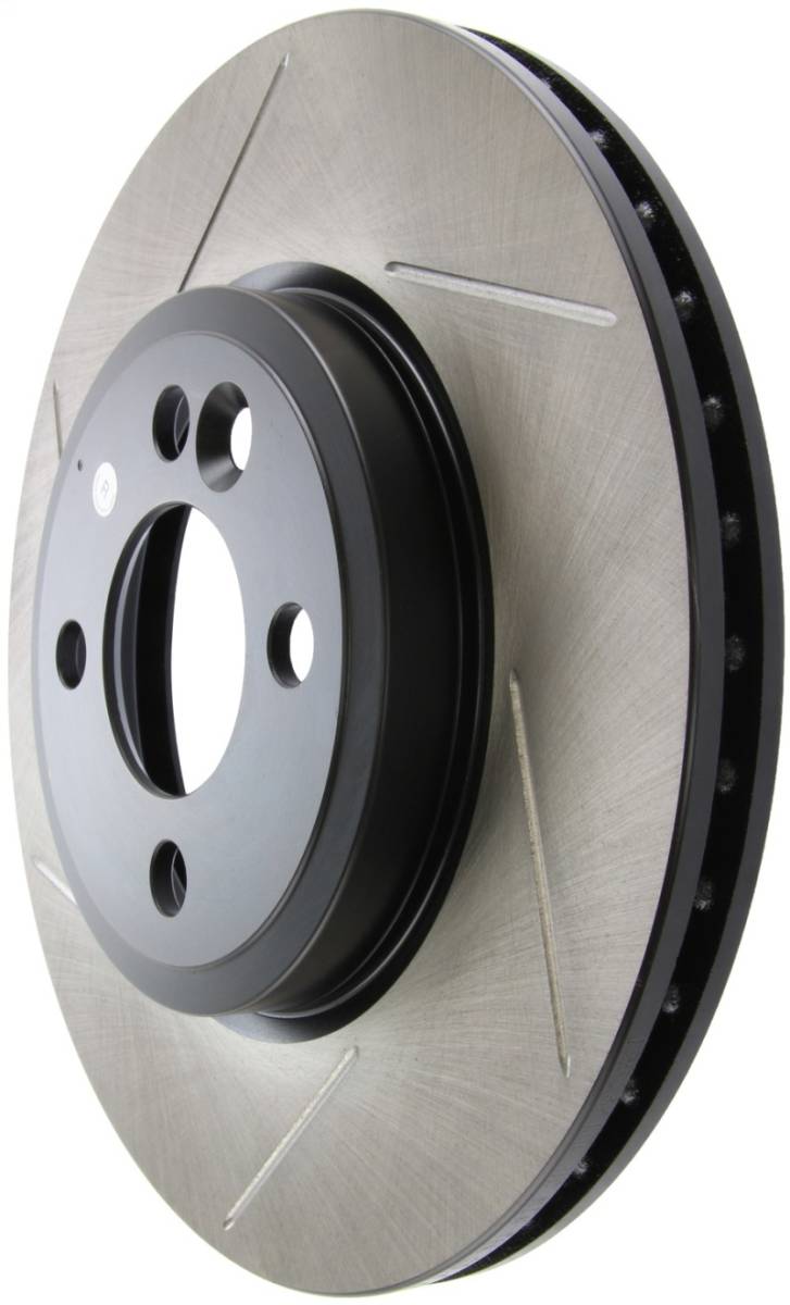 Premium e-coated rotor with advanced metallurgy that greatly reduces pad squeal. Especially effective with higher friction, European style brake pad compounds. Slotted for increased bite, improved looks and better performance