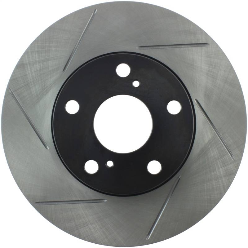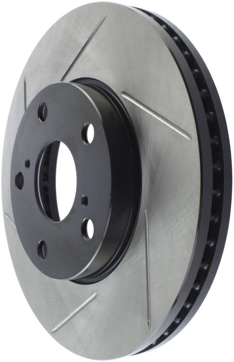 Premium e-coated rotor with advanced metallurgy that greatly reduces pad squeal. Especially effective with higher friction, European style brake pad compounds. Slotted for increased bite, improved looks and better performance