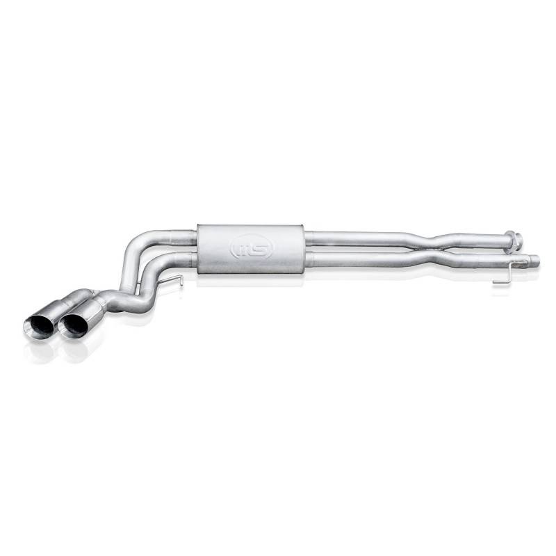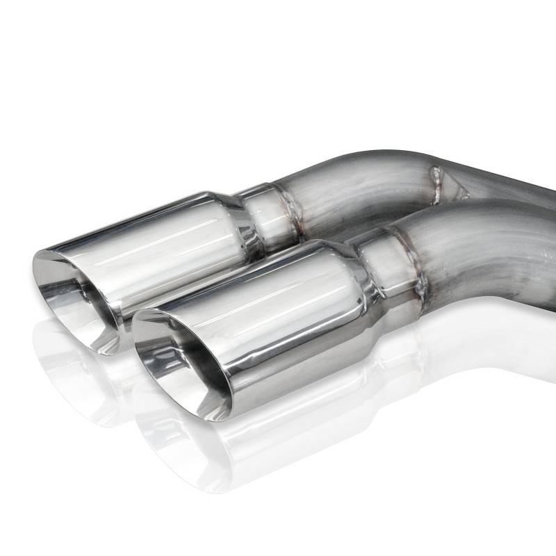F-250 and F-350 2WD/4WD 6.2L 2017-18 Crew Cab/Super Cab Lightning style catback. 3" true dual catback exhaust features an X-pipe and a S-tube muffler with dual 4" polished slash cut, double wall tips. Exits in front of passenger rear tire.