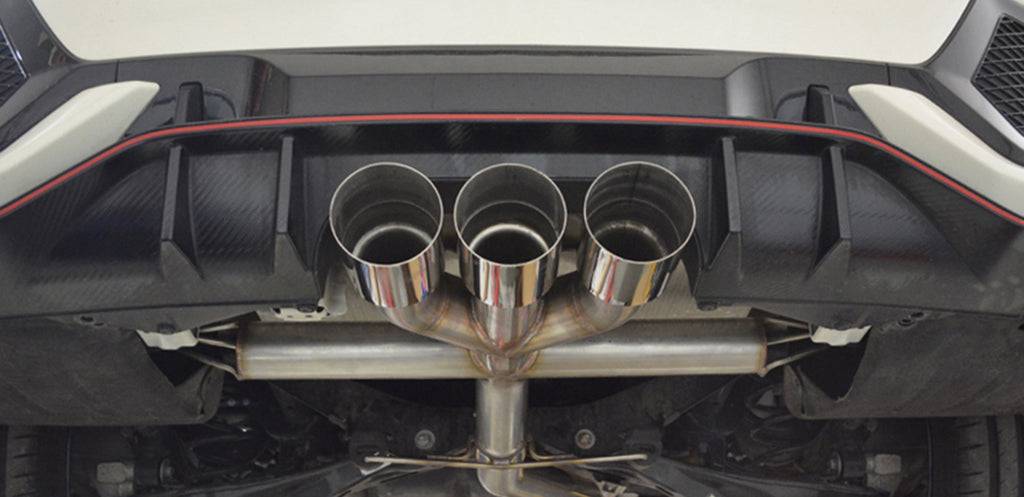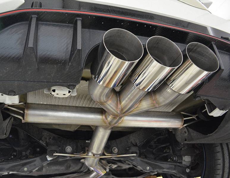 A real 3" Catback exhaust that weighs only 34 pounds as opposed to the stock weight of 39 pounds is made out of full 304 stainless steel.