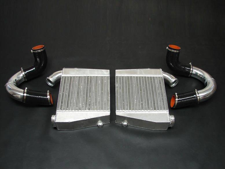 This Front Mount Intercooler upgrade replaces both OEM "tube and fin" intercoolers as well as the lower intercooler piping.