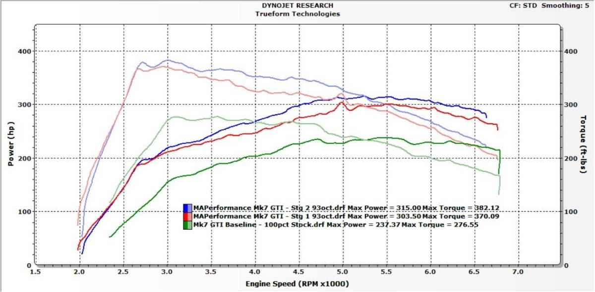 With the MAPerformance Stage 2 Package including the MAPerformance Air Intake System and free-flowing downpipe the engine is able to breathe much easier, employing much more efficient horsepower and torque. With the Stage 2 calibrations, one can experience gains of up to 90whp and 100wtq!