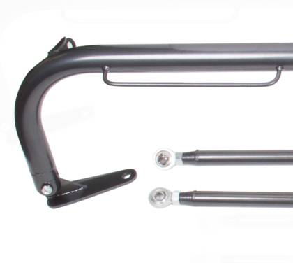 50.5" Universal Harness Bar with swiveling ends, and two adjustable lower mounting arms with heim joint ends.