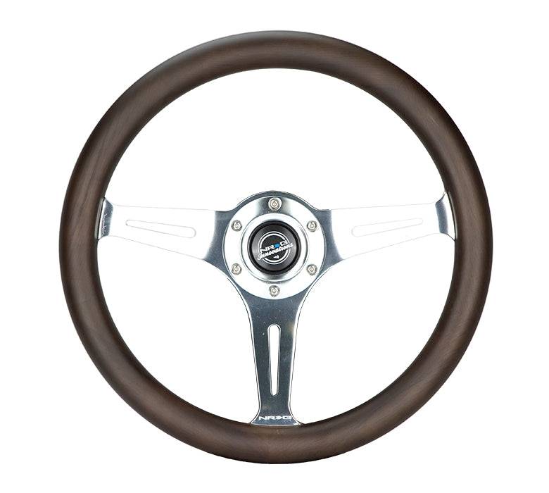 NRG Innovations Classic Wood Grain Wheel - 350mm 3 Chrome Silver spokes, Oak color wood