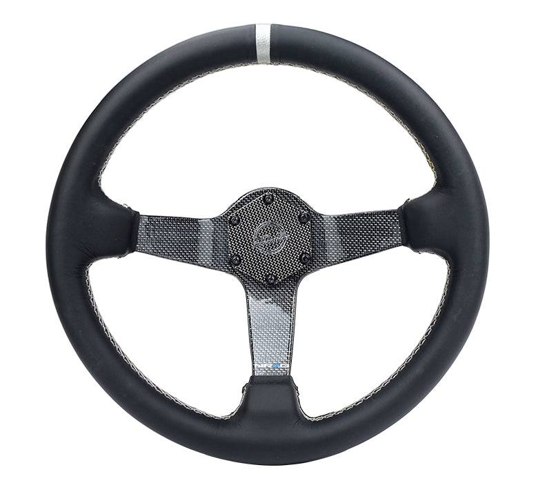 Introducing the new color laced carbon fiber steering wheel. Featuring real leather steering wheel with Stripe.