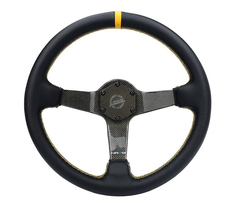 Introducing the new color laced carbon fiber steering wheel. Featuring real leather steering wheel with Stripe.