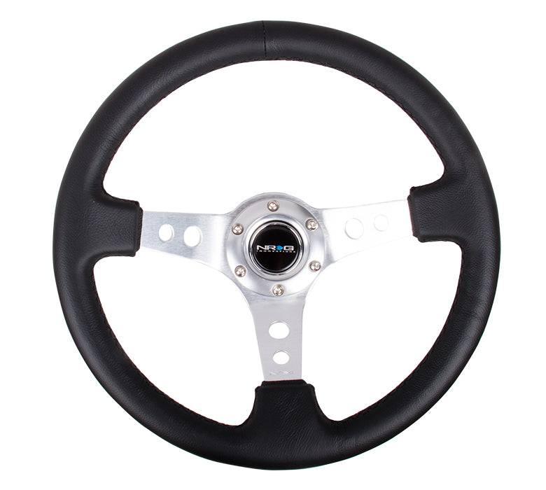 NRG Innovations 350mm Steering Wheel (3" Deep) - Silver Spoke w/ Black Leather