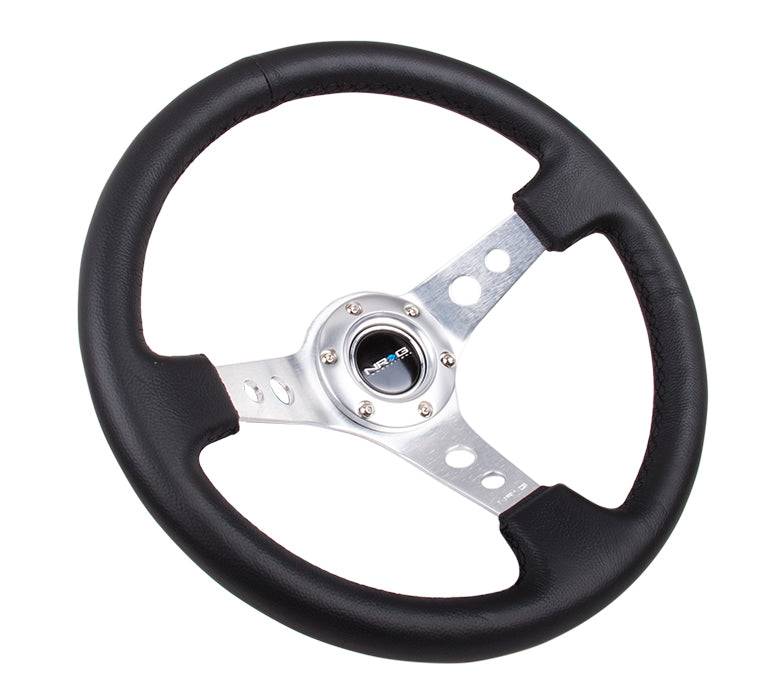 NRG Innovations 350mm Steering Wheel (3" Deep) - Silver Spoke w/ Black Leather RST-006SL