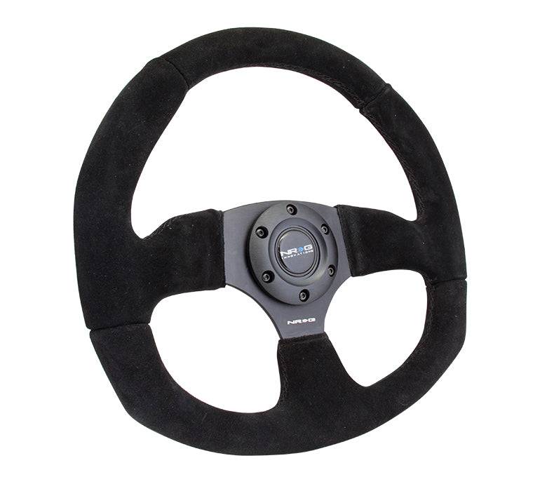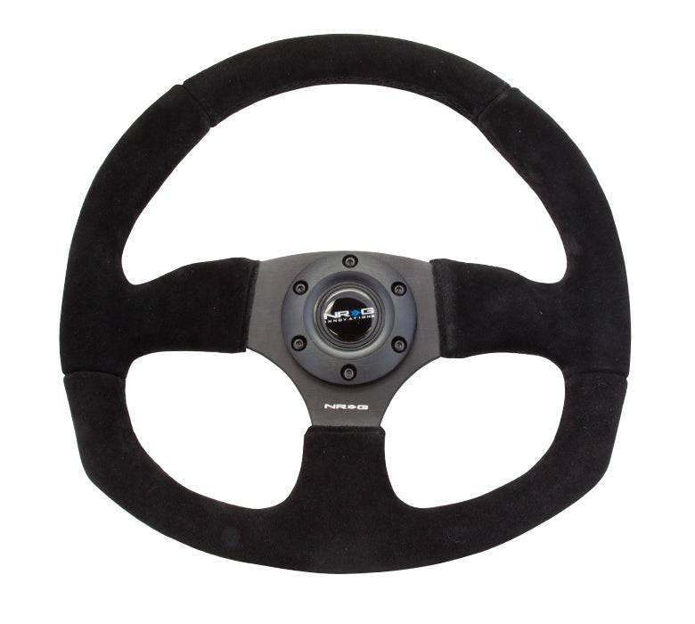 NRG Innovations Steering Wheel (320mm Horizontal / 330mm Vertical) Black Suede w/ Black Stitching RST-009S