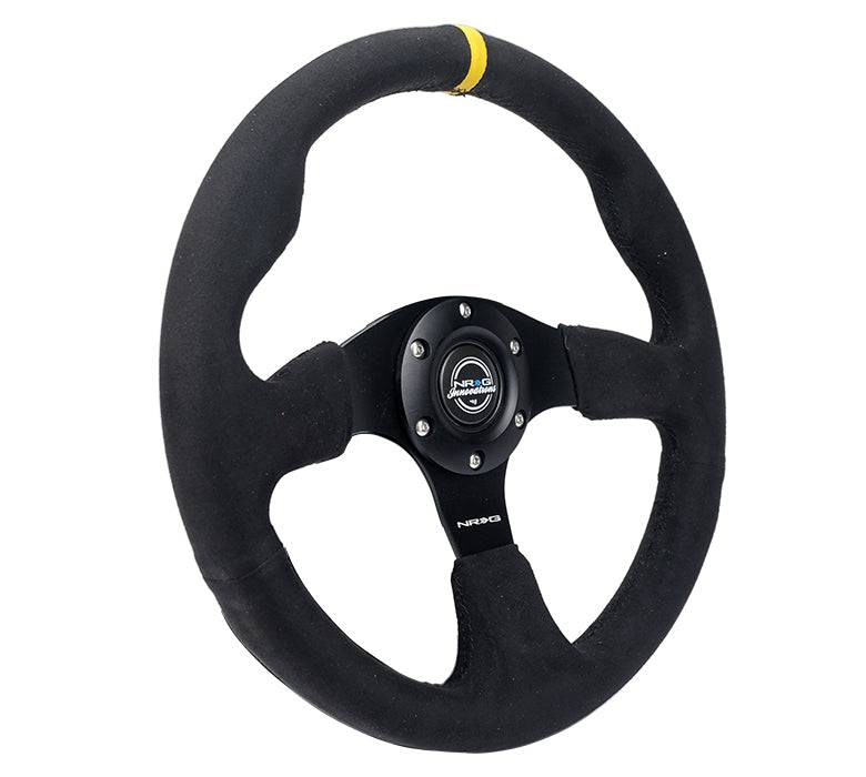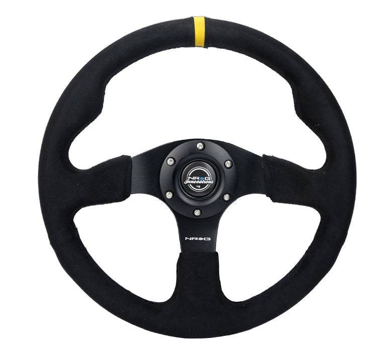 NRG Innovations (320mm) Alcantara Steering Wheel w/ Yellow Center and Black Stitch
