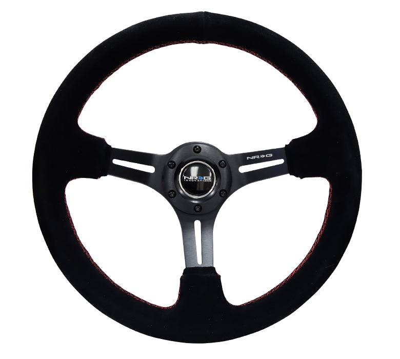 NRG Innovations Steering Wheel (350mm / 3in. Deep) Black Suede w/ Red Stitching & 5mm Spokes w/ Slits RST-018S-RS