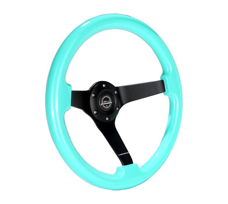 NRG Innovations Steering Wheel (350mm / 3in. Deep) Minty Fresh Wood Grain w/ Black 3-Spoke Center