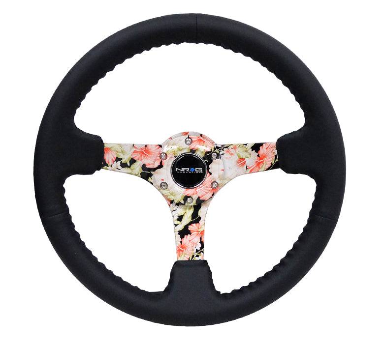 NRG Innovations Steering Wheel (350mm / 3in. Deep) Black Leather Floral Dipped w/ Black Baseball Stitch RST-036FL-R