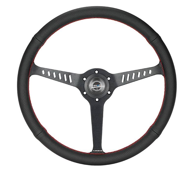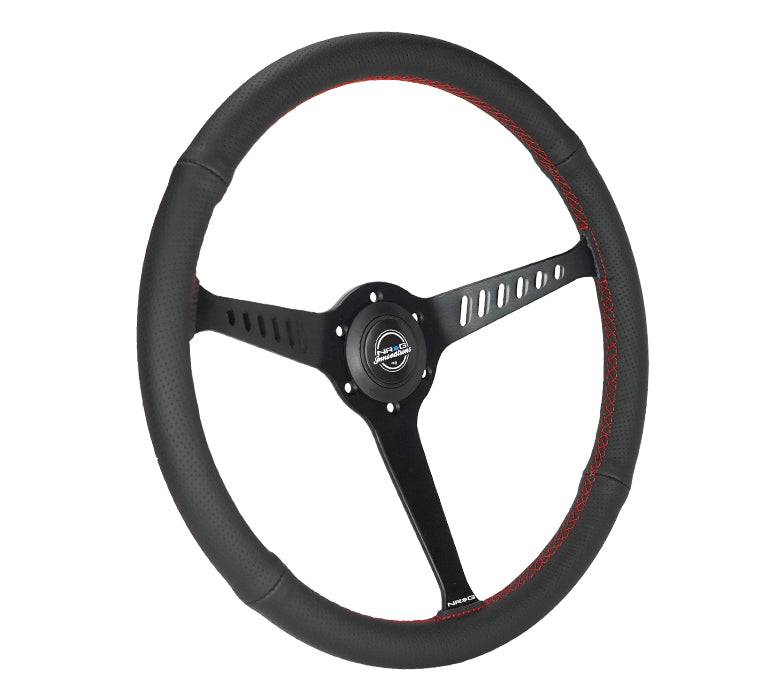 NRG Innovations Reinforced Stealth Wheel (380mm / 1in Deep Dish) 3 Spoke Center - Perforated Leather Black Stitch