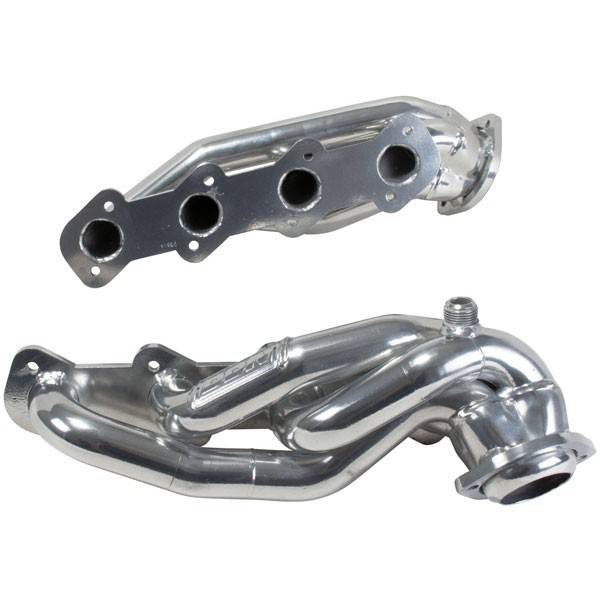 BBK shorty headers will give your modular V8 powered F-150 a throaty exhaust note. The silver ceramic finish is very durable and helps hold in more heat for more power and reduced underhood heat.