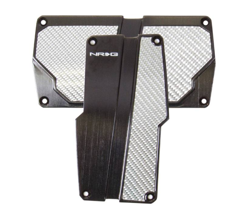 NRG Brushed Aluminum Sport Pedal A/T - Black w/Silver Carbon PDL-150BK