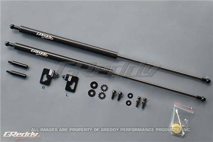 GReddy Carbon Hood Dampers are a great way to update and improve the functionality and looks of your modified engine bay.