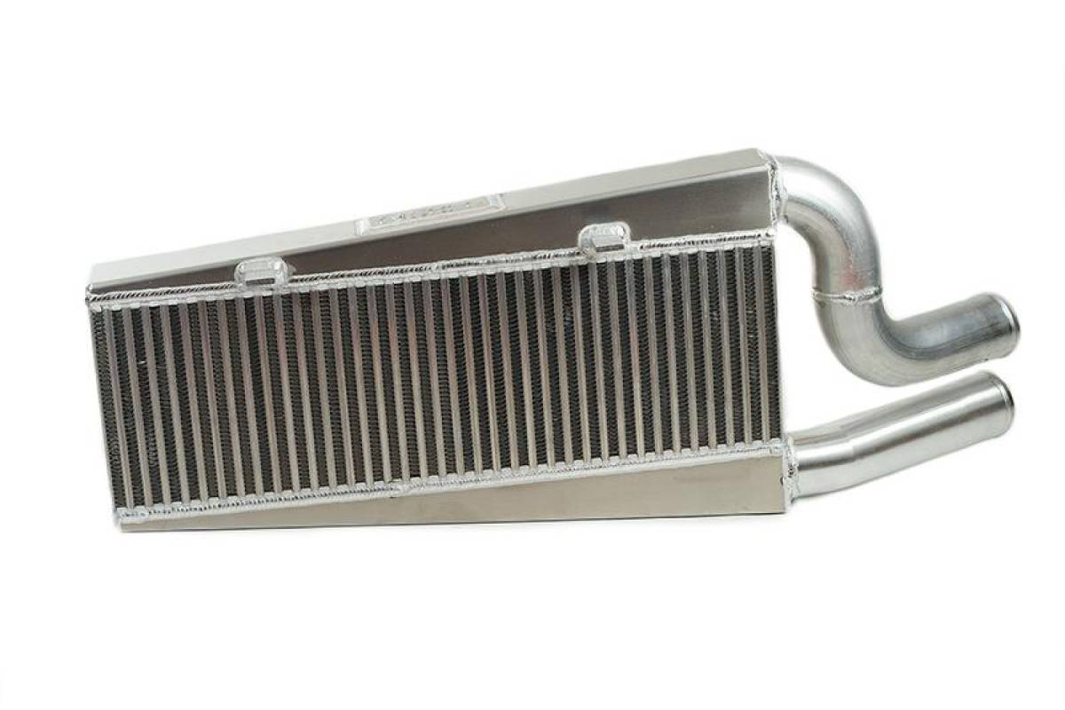Featuring aerodynamic endtanks, Full-Race's innovative vertical-flow intercooler is designed for fast turbo spool, cold IATs (inlet air temperature) and the lowest possible pressure drop.