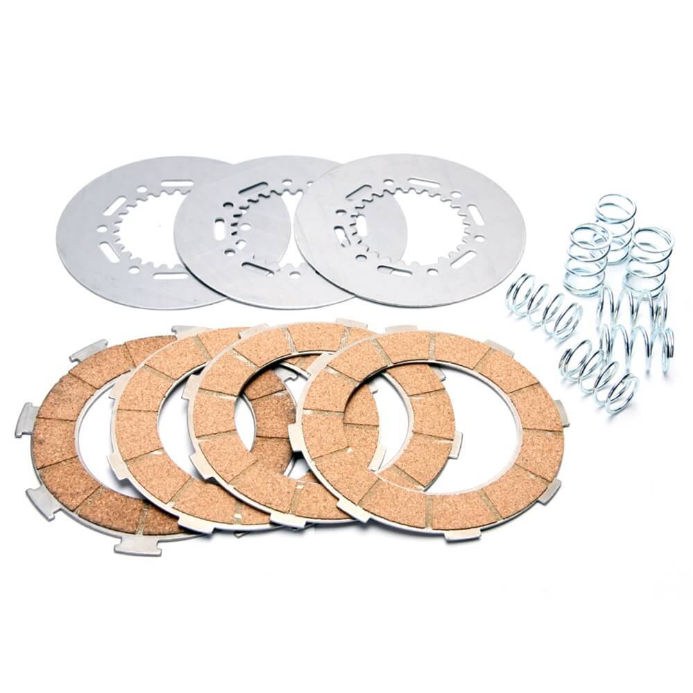 This Malossi kit converts your clutch to a superior 4-cork plate setup. Includes cork and steel plates. Expect smother clutch response. Fits P200/Rally. Also fits Stella with a 7-spring clutch.