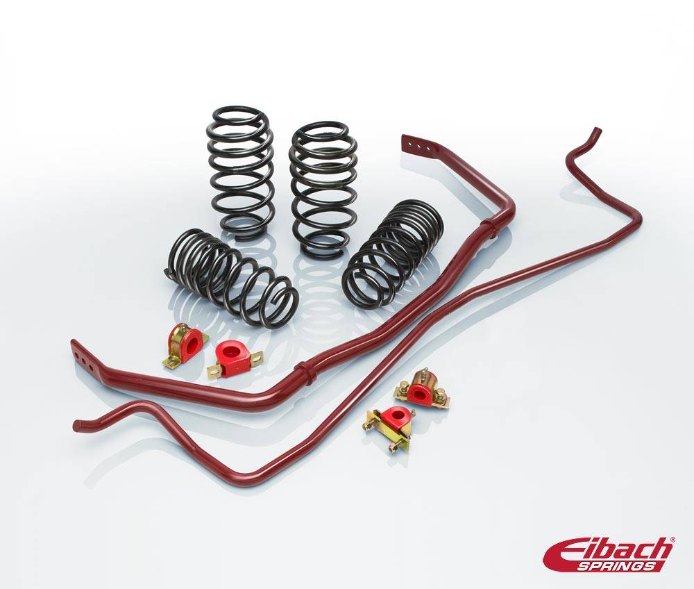 If you crave the corners - the Eibach PRO-PLUS delivers. The Eibach PRO-PLUS handling packages include our legendary Eibach PRO-KIT springs along with the matching ANTI-ROLL-KIT Sway Bars. The Eibach PRO-KIT lowers your car's center of gravity, reducing squat during acceleration, body roll in corners and excessive nose-dive under braking. Add the Eibach ANTI-ROLL-KIT Sway Bars - with increased design stiffness over stock Sway Bars - and you get pure, balanced-handling perfection.