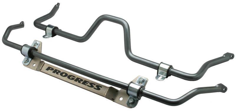 Progress anti-roll bars dramatically improve handling. How? They minimize the traction-robbing body "lean" that rolls part of the outside tires off the pavement. Our Sport-tuned Anti-roll bars replace skinny OEM bars and rubber bushings with larger diameter (stiffer) alloy steel bars and polyurethane bushings. More roll stiffness means less body "lean", and the tires stay flatter on the pavement (larger contact patches). The result is more grip and added driver control!