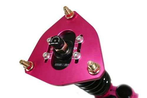 On applications utilizing strut-type suspension designs, the Megan Racing damper kits come with upper pillow-ball mount camber plates which are adjustable and allow you to easily tune your camber. This enables you to adjust your cars ride height and still adjust the camber to improve handling, vehicle predictability and tire wear, a nice feature for any situation, whether it is on the track or on the street. This improved level of adjustability will give you a competitive edge over other suspension setups.