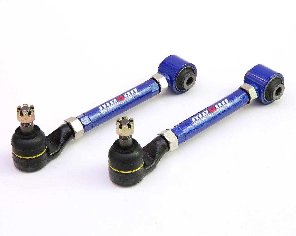 Megan Racing rear camber arms are designed to allow you to adjust the camber of your vehicle, which is particularly important after modifications have been made to the suspension. The stock suspension allows for slight modifications, however it is often difficult or impossible to maintain proper alignment once you have modified it using the stock system. Alignment is very important for your driving experience, as it can affect under steer, over steer, braking, acceleration, tire wear, and straight line stability.
