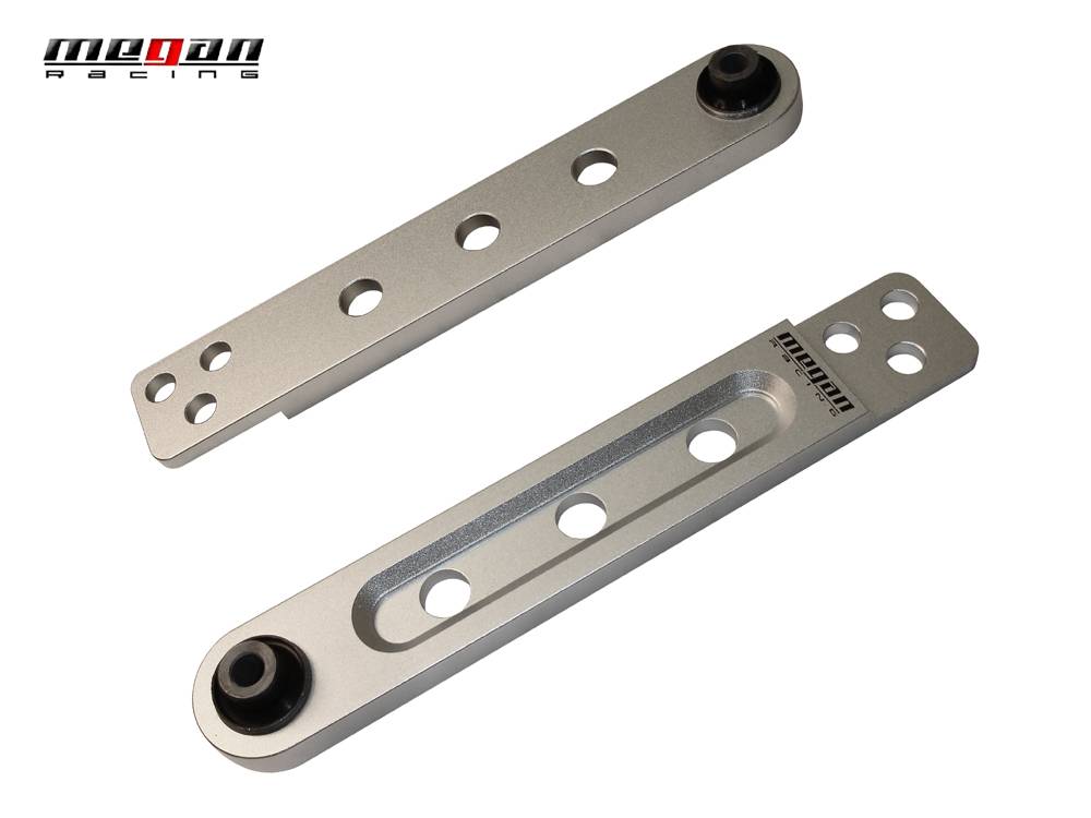 These Megan Racing lower control arms are built with T-6065 aluminum which has been T6 heat treated for maximum strength while still being light in weight. These will replace the stock factory lower control arms which has the benefits of reducing unsprung weight and reducing jacking forces. The stock bushings are replaced by hardened rubber bushings which provide resistance to suspension deflection and improve the durability of the bushings.