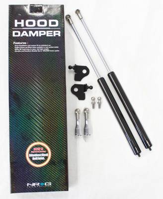 NRG Innovation offers Hood dampers for various applications. The danger of working under the hood is that there’s a possibility of the hood accidentally closing. With the addition of NRG hood dampers this possible dangerous scenario is greatly reduced. NRG offers dampers in full and low pressure depending on whether the vehicle is equipped with a heavy factory hood or an aftermarket lightweight FRP/CF hood.