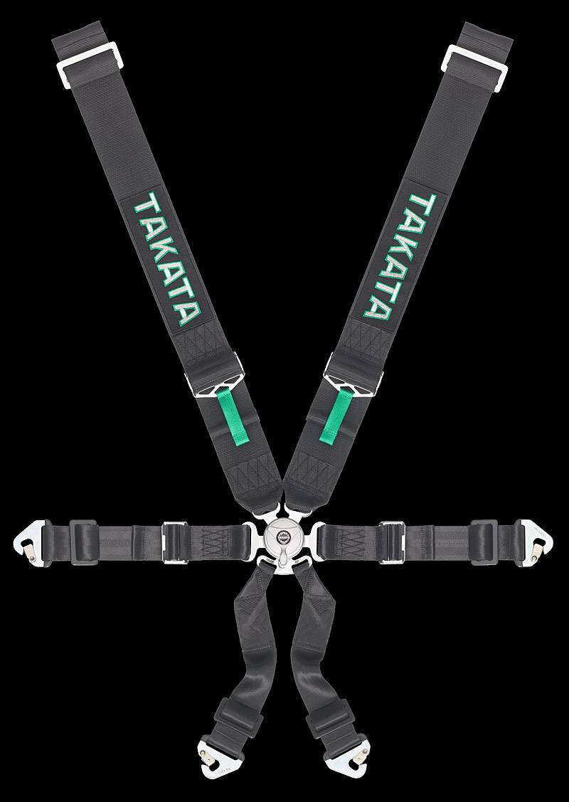 The RACE 6 is the premium harness for your competition vehicle. This 6 point harness is FIA approved with T-Bar sub-strap, 3" shoulder belts, 2" lap belts and the exclusive TAKATA aluminum multi-point release cam-lock buckle.