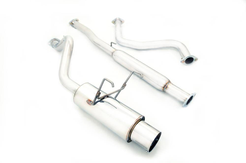 Megan Racing Drift Spec Cat-Back exhaust systems were designed to replace your stock exhaust system from the catalytic converter back. Utilizing a straight-through design, mandrel bends, and CNC machined flanges, this Cat-Back system will improve your cars horsepower, torque, and overall performance. Additionally featuring a tip that is designed to increase the scavenging effect to further improve your exhaust’s performance. Made with SUS-304 stainless steel, this high quality Cat-Back system will improve the exhaust flow of your car, granting a deeper and more aggressive tone while maintaining an awesome, stylish look.