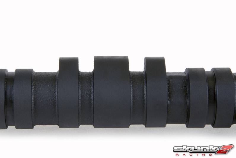 Skunk2 camshafts deliver unparalleled power as a result of continual, extensive development and testing. By utilizing advanced manufacturing techniques and the latest computerized simulation and modeling equipment, Skunk2 camshafts are able to deliver maximum power across the entire powerband. Skunk2 designs and tests all of its camshafts in-house to ensure the highest quality and performance. Each camshaft is manufactured of forged tool steel core, increased torsional strength, improved durability characteristics, and reduced frictional effects. All Skunk2 camshafts are ground to exact specifications using state-of-the-art CNC cam grinding machines equipped with cubic-boron grinding wheels and feature hardened, wear-resistant lobes and surfaces.