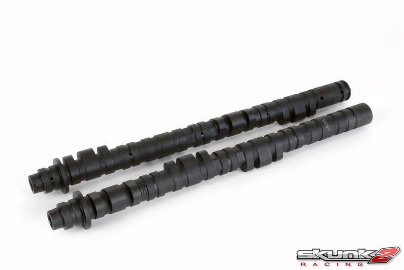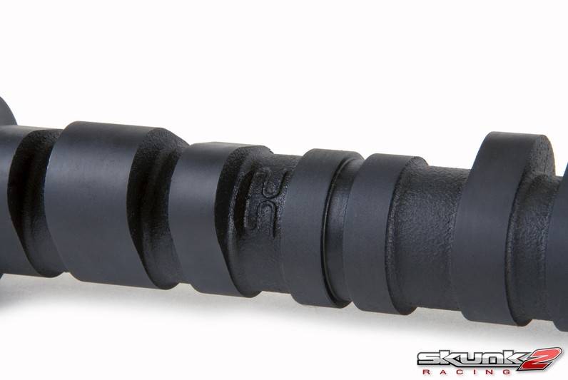 Skunk2 camshafts deliver unparalleled power as a result of continual, extensive development and testing. By utilizing advanced manufacturing techniques and the latest computerized simulation and modeling equipment, Skunk2 camshafts are able to deliver maximum power across the entire powerband. Skunk2 designs and tests all of its camshafts in-house to ensure the highest quality and performance. Each camshaft is manufactured of forged tool steel core, increased torsional strength, improved durability characteristics, and reduced frictional effects. All Skunk2 camshafts are ground to exact specifications using state-of-the-art CNC cam grinding machines equipped with cubic-boron grinding wheels and feature hardened, wear-resistant lobes and surfaces.