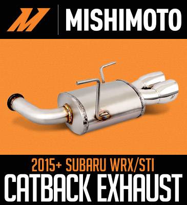The Mishimoto engineers designed this WRX and STI cat-back exhaust as a four-piece design, comprised of precision TIG-welded, 304 stainless steel. This allows a smooth exhaust flow from the 3.0" 2-bolt exhaust flange all the way through the 2.25" Y-section. To top it off, this cat-back includes two 2.25" V-band clamps, a 3" exhaust-band clamp, a new 3" 2-bolt flange gasket, and all stainless steel hardware, so you don’t have to worry about rusty hardware. For 2015 WRX or STI owners looking to get the most out of their vehicle, this cat-back exhaust mates perfectly with the Mishimoto Subaru WRX Performance Downpipe. The Mishimoto Subaru WRX Cat-Back Exhaust is proudly made in the USA and comes with the Mishimoto Lifetime Warranty.
