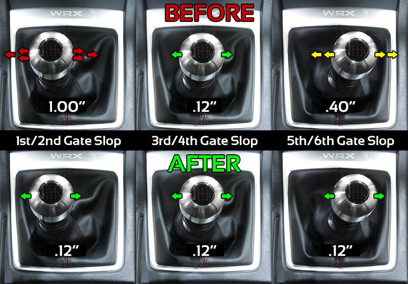 Due to the slop of the internals in the transmission, there is an unacceptable amount of horizontal slop within the 1st- and 2nd- gear shift gates. What should be little to no movement ends up being nearly 1.0 inch of play. This makes for an unnatural placement of shift gates and a lost feeling of which gear you are in. The PERRIN Shifter Stop removes this play, reducing the horizontal movement to 0.12 inches. This makes for a solid connection between the driver and transmission.