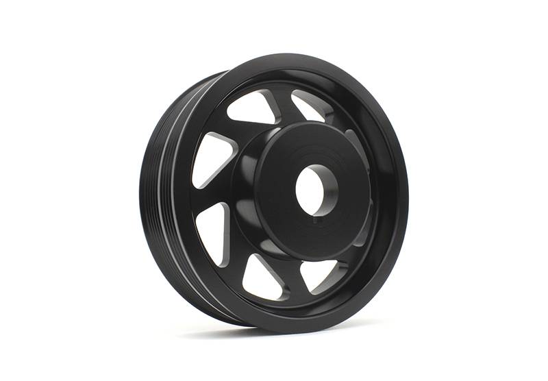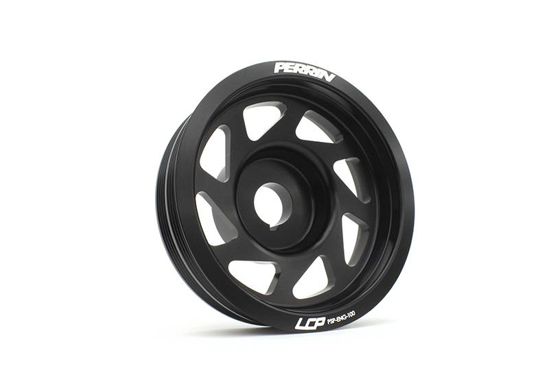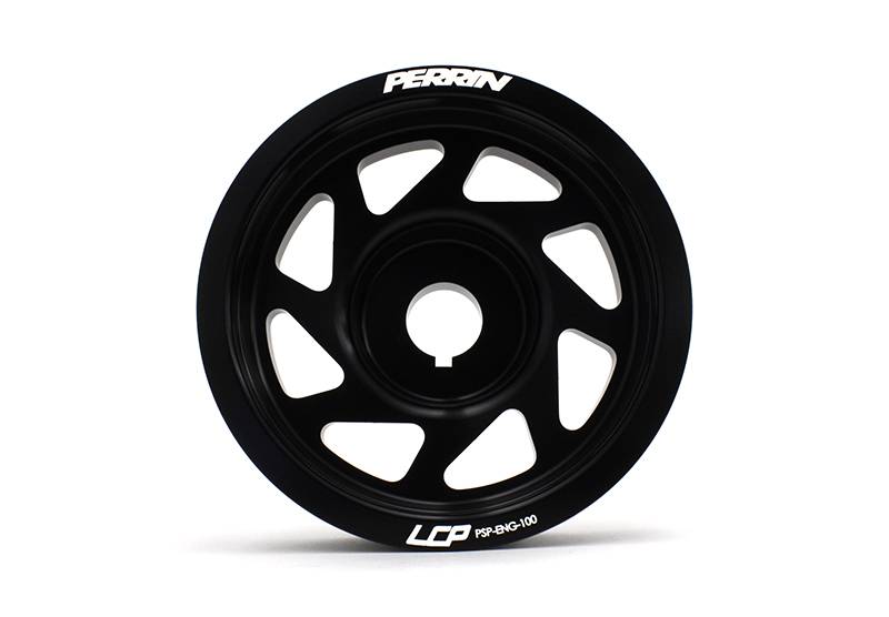The PERRIN Performance Crank Pulley weighs just 1.2 lbs., which is 4 lbs. lighter than the OEM crank pulley. This reduction in weight from the crank shaft is equal to removing more than 100 lbs. of vehicle weight! Throttle response, horsepower, and torque are all increased with this easy-to-install part.