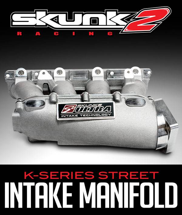 Skunk2 Racing Ultra Series Intake Manifolds are the next generation of high performance intake manifolds. The much anticipated K-Series Street model is now available. Proudly presented by the Skunk2 Racing engineering team, the Ultra Series is years of research and development, culminated in a multi-piece cast aluminum intake manifold that offers advantages that only a modular design could allow.