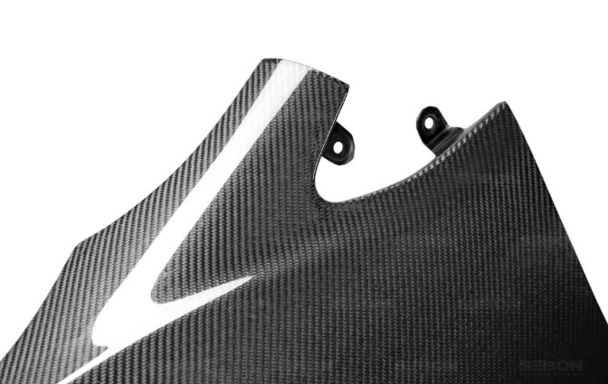 Every component is constructed with a consistent weave pattern. Our production processes allow exceptional carbon/resin ratio, creating high product stiffness that also leads to extra strength. For a stunning finish, our products are coated with a glossy clear coat that does not chip or flake. We meticulously inspect all of our components and stand firmly behind our products so that you can enjoy peace of mind with every genuine Seibon Carbon product.