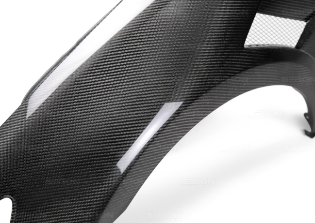 Every component is constructed with a consistent weave pattern. Our production processes allow exceptional carbon/resin ratio, creating high product stiffness that also leads to extra strength. For a stunning finish, our products are coated with a glossy clear coat that does not chip or flake. We meticulously inspect all of our components and stand firmly behind our products so that you can enjoy peace of mind with every genuine Seibon Carbon product.