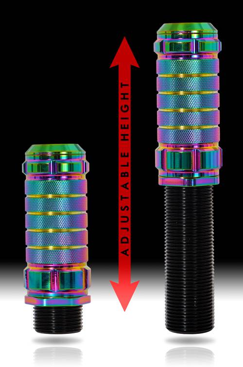This product improves the overall look of the interior of the vehicle while providing some performance gain. Different shapes of the knob are ergonomically correct depending on shifting style. Height adjustable for low and high shifting advantage.Weighted aluminum construction improves shifting by increasing inertial weight in order to allow shifter to more smoothly and quickly engage into the gear box. A secret storage for your special stuff to be protected can be found inside the shift knob. Shifting patterns included.