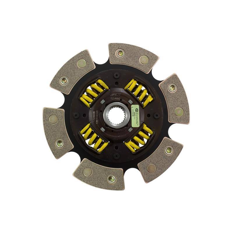 6214510 is a 4-pad spring-centered race disc made with high quality ceramic friction materials that provides a moderate wear rates and high heat tolerance. The engagement is harsher, but shifting is faster. The heavy duty torsional dampening springs are stronger, in most cases, than standard springs and are provided in the best sizes and spring rates to suit the application. It utilizes wraparound spring windows, thicker retainer stampings and a heat-treated, spring steel drive plate to provide support, reduce stress concentrations and increase strength and reliability. The race disc features a heat-treated spring steel drive plate and is well-suited for the smaller disc sizes in smaller engines. High burst strength and holds 28% more torque than typical organic materials. Benefits