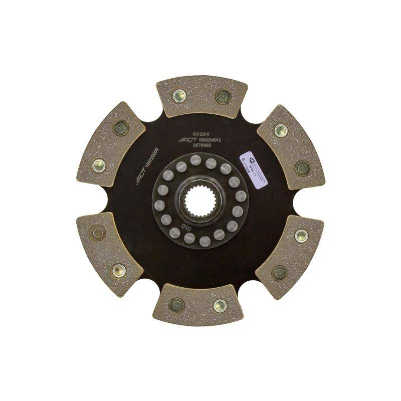 6212010 is a 4-pad spring-centered race disc made with high quality ceramic friction materials that provides a moderate wear rates and high heat tolerance. The engagement is harsher, but shifting is faster. The heavy duty torsional dampening springs are stronger, in most cases, than standard springs and are provided in the best sizes and spring rates to suit the application. It utilizes wraparound spring windows, thicker retainer stampings and a heat-treated, spring steel drive plate to provide support, reduce stress concentrations and increase strength and reliability. The race disc features a heat-treated spring steel drive plate and is well-suited for the smaller disc sizes in smaller engines. High burst strength and holds 28% more torque than typical organic materials. Benefits