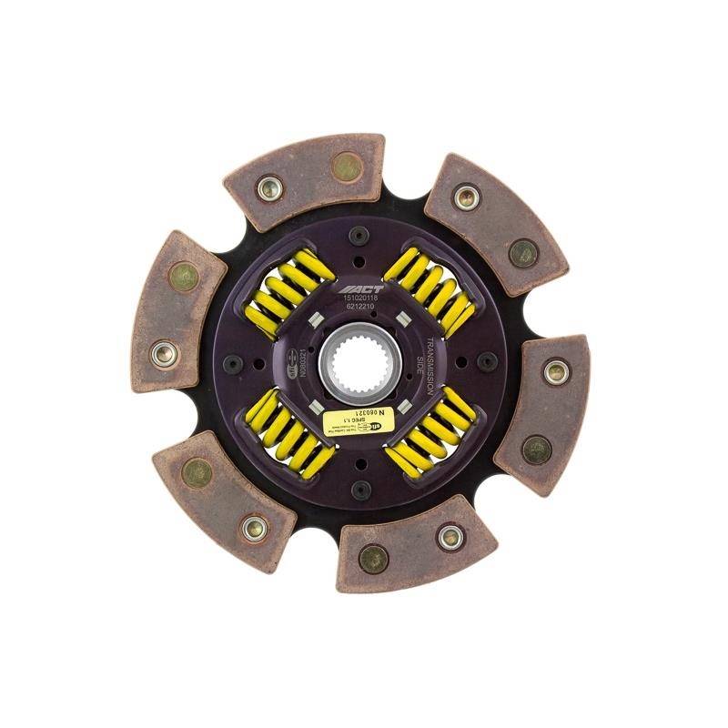 6212210 is a 4-pad spring-centered race disc made with high quality ceramic friction materials that provides a moderate wear rates and high heat tolerance. The engagement is harsher, but shifting is faster. The heavy duty torsional dampening springs are stronger, in most cases, than standard springs and are provided in the best sizes and spring rates to suit the application. It utilizes wraparound spring windows, thicker retainer stampings and a heat-treated, spring steel drive plate to provide support, reduce stress concentrations and increase strength and reliability. The race disc features a heat-treated spring steel drive plate and is well-suited for the smaller disc sizes in smaller engines. High burst strength and holds 28% more torque than typical organic materials. Benefits