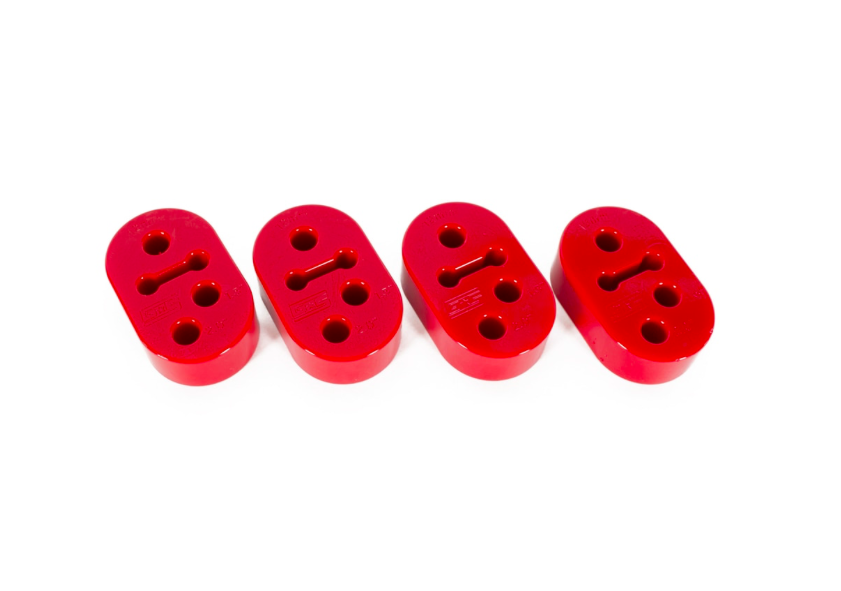 Aftermarket exhaust systems are often of a larger tubing diameter than factory systems and as a result, are a tighter fit below your car. With factory rubber exhaust hangers, the result can often be an exhaust system that's banging against other factory components. The solution to that problem is polyurethane exhaust hangers and just in case simply stiffening the hanger isn't enough, GrimmSpeed has the solution. The GrimmSpeed Two Position Exhaust Hangers feature two mounting positions. One mimics the factory 1.5in spacing and the other is slightly longer, at 2.0in.